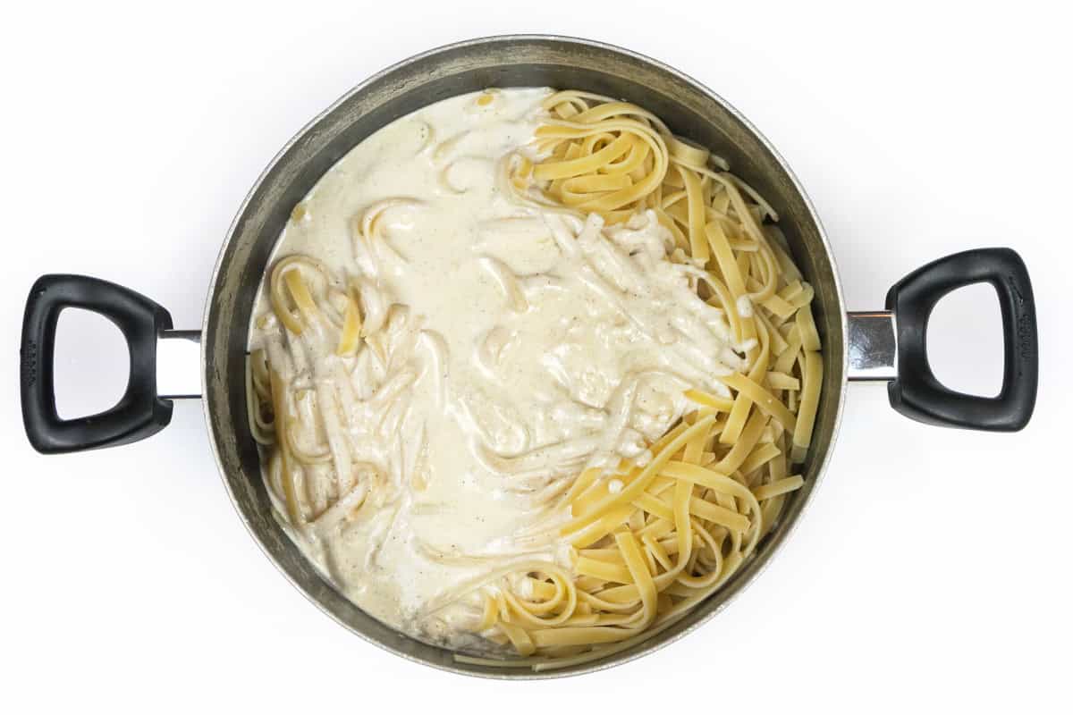 Step 5. Simmer until Alfredo Sauce Thickens